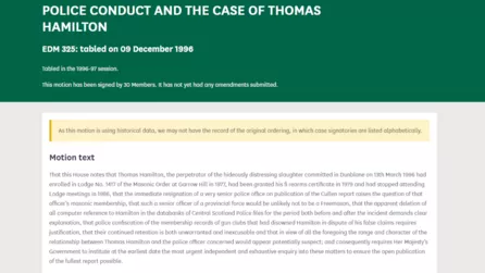Thomas Hamilton Dunblane Enrolled In Lodge No. 1417 Of The Masonic Order at Garrow Hill in 1977