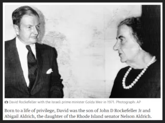 Paedophile Child Killer David Rockefeller With Israeli PM Golda Meir